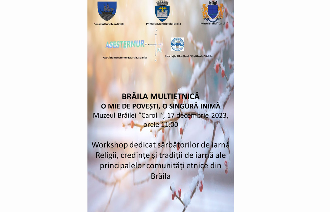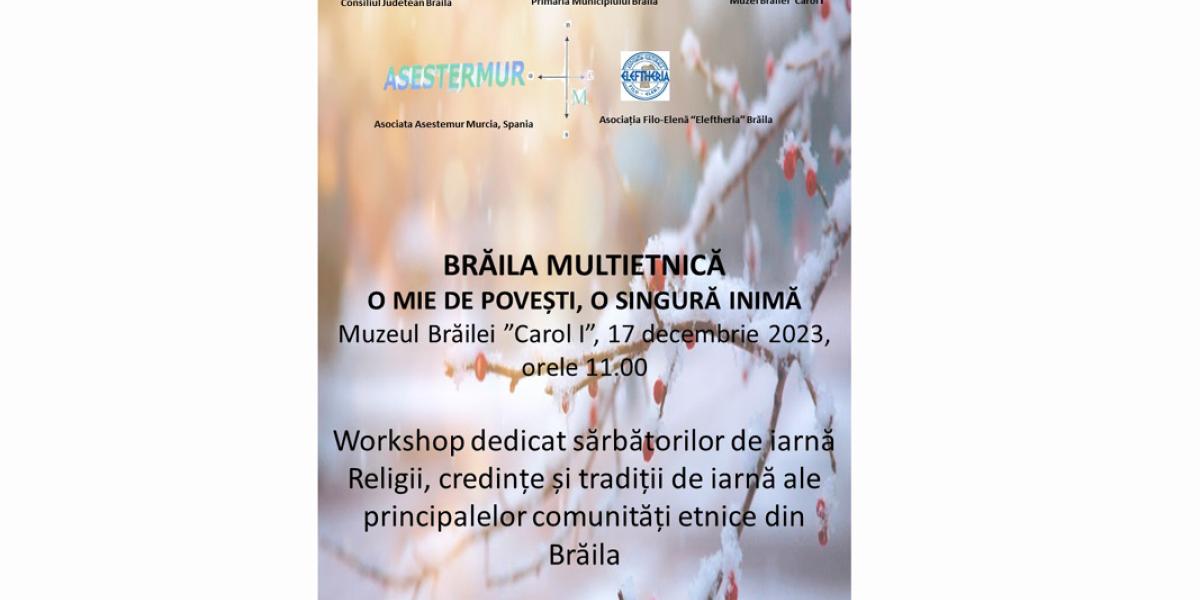 Evenimentul - un workshop dedicat, deopotrivă, sărbătorilor de iarnă, credințelor și obiceiurilor principalelor etnii din orașul nostru - prilejuit de Ziua Minorităților Naționale este organizat în parteneriat cu Muzeul Brăilei „Carol I”, Consiliul Județean Brăila, Primăria Municipiului Brăila și Asociația Asestemur, din Murcia, Spania.