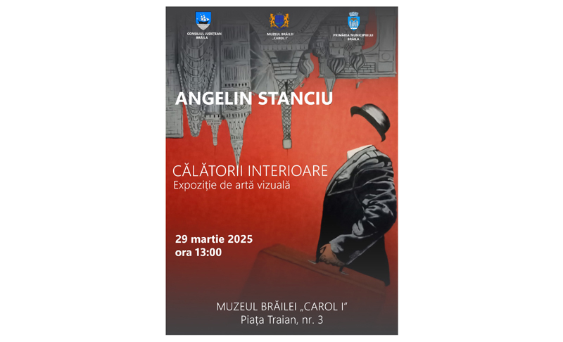 Muzeul Brăilei „Carol I” îi invită pe iubitorii de artă la vernisajul expoziției personale „Călătorii interioare” a artistului Angelin Stanciu, care va avea loc sâmbătă, 29 martie, începând cu ora 13:00, la sediul central din Piața Traian nr. 3. Expoziția, un adevărat labirint al emoțiilor și al gândurilor, explorează diversitatea și complexitatea artei vizuale prin intermediul lucrărilor de pictură, instalații și obiecte artistice, precizează organizatorii.