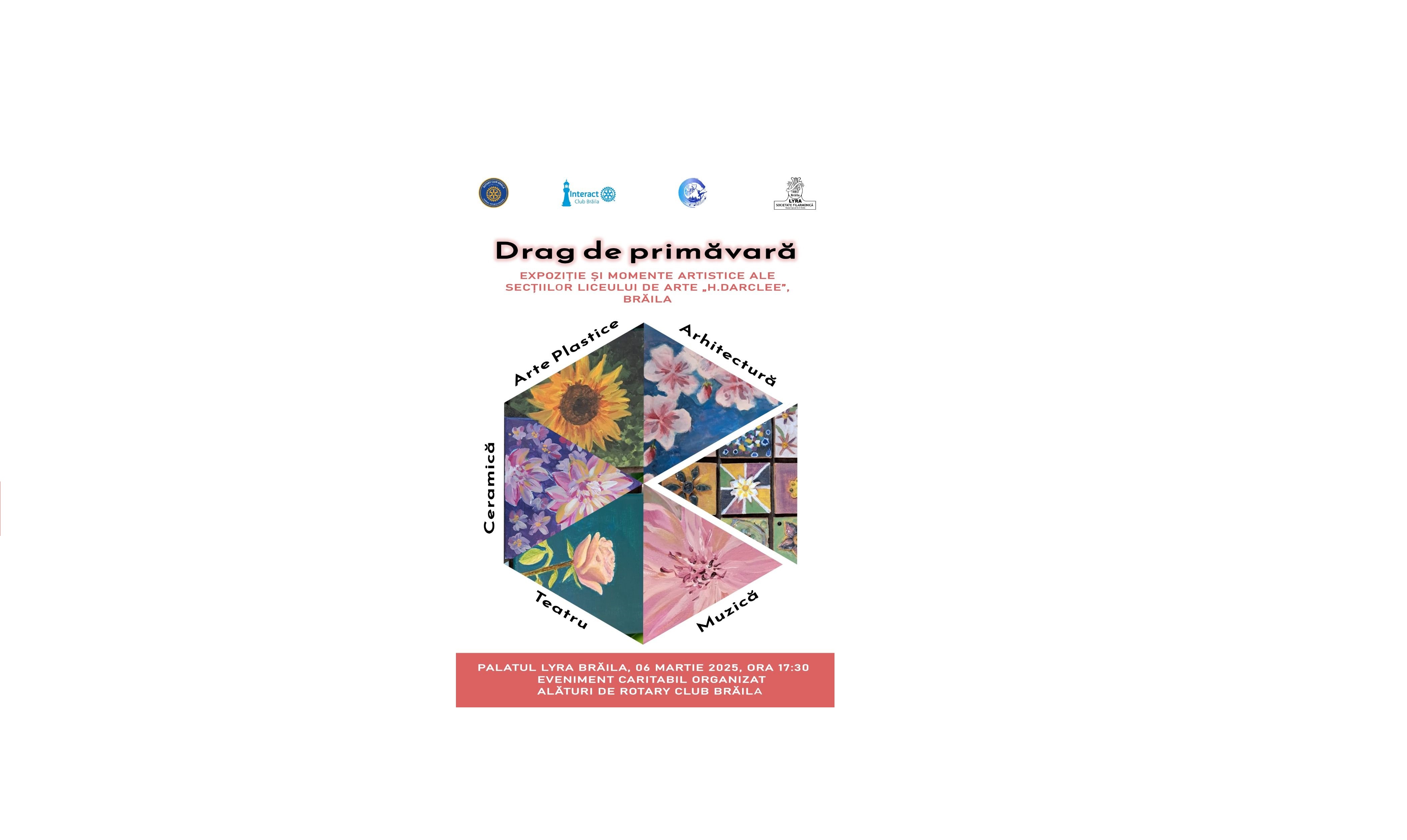 Liceul de Arte „Hariclea Darclee” îi invită pe brăileni la evenimentul intitulat „Drag de primăvară”, pus la punct de elevii secțiilor Arte Plastice, Muzică, Ceramică, Arhitectură și Teatru.