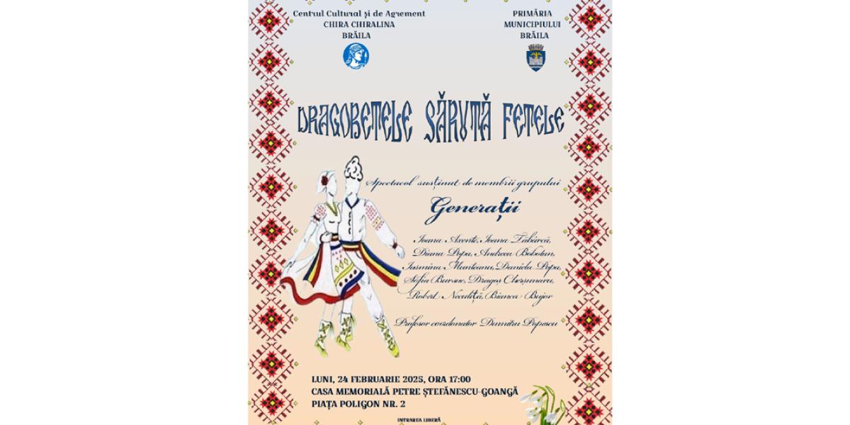 În așteptarea Dragobetelui, membrii Grupului „Generații” - Ioana Axente, Ioana Tăbârcă, Diana Popa, Andreea Bobotan, Iasmina Munteanu, Daniela Popa, Sofia Bursuc, Bianca Bujor, Dragoș Cherșunaru, Robert Neculiță - coordonați de profesorul Dumitru Popescu, vor cânta și vor recita poezii alese din creația populară.
