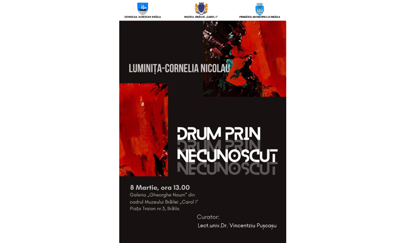 Muzeul Brăilei „Carol I” vă invită sâmbătă, 8 martie, ora 13:00 - de Ziua Internațională a Femeii - la vernisajul expoziției „Drum prin necunoscut”, care va avea loc la Galeria „Gheorghe Naum” din cadrul Muzeului Brăilei „Carol I”, Piața Traian nr. 3.