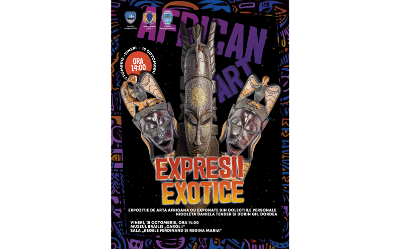 Vineri, 18 octombrie, începând cu ora 14:00, în somptuoasa Sală „Regele Ferdinand I și Regina Maria”, de la sediul central al Muzeului Brăilei „Carol I” (Piața Traian nr. 3), va avea loc vernisajul Expoziei de Artă Africană „Expresii exotice”.