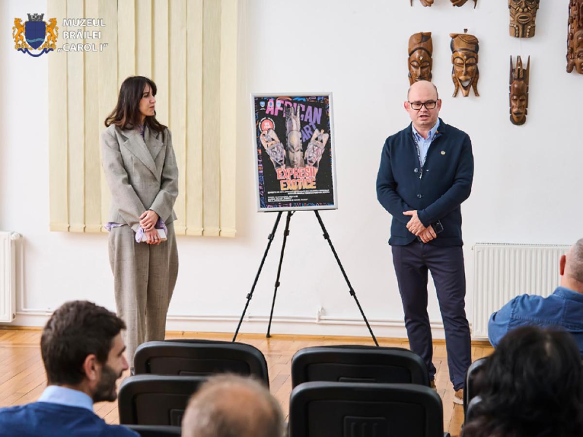 Vernisajul Expoziției de artă africană „Expresii exotice”, ce adună loalaltă exponate din colecțiile personale ale pasionaților de artă Nicoleta Daniela Tender și Dorin Gh. Dordea, a avut loc vineri, 18 octombrie, în Sala „Regele Ferdinand I și Regina Maria”, de la sediul central al Muzeului Brăilei „Carol I” (Piața Traian nr. 3). Au prezentat: conf. univ. dr. Costin Croitoru, managerul Muzeului Brăilei „Carol I”, și Fatme Nistoroi, muzeograf la Serviciul Relații cu Publicul al instituției.