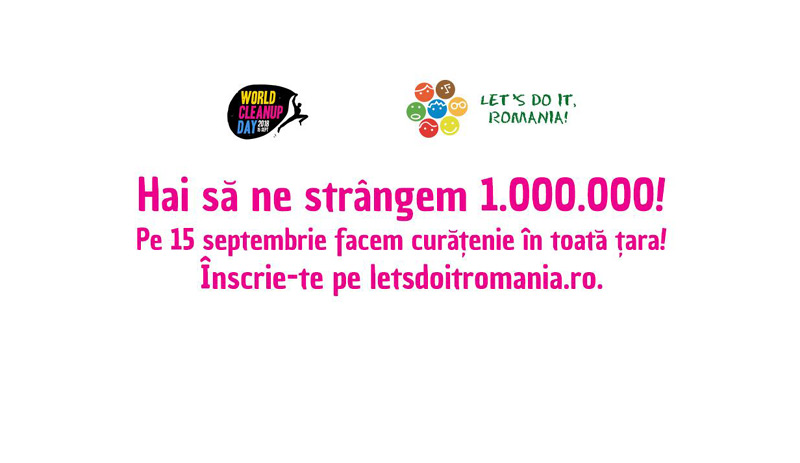 Pe 15 septembrie va avea loc Ziua de Curăţenie Naţională şi Globală “Let's Do It, Romania!”, iniţiativă care îşi propune să mobilizeze toţi românii la cea mai ambiţioasă acţiune civică de până acum - World Cleanup Day. La nivel internaţional, 150 de ţări se unesc în cea mai mare mişcare civică, obiectivul campaniei fiind acela de a mobiliza 5% din populaţia Globului pentru a produce o schimbare reală de comportament faţă de resurse şi faţă de deşeurile generate.