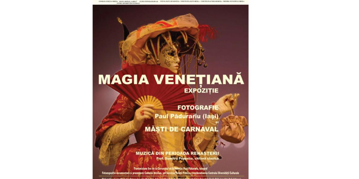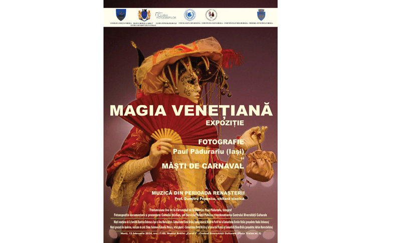 Marți, 13 februarie, de la ora 17.00, la Centrul Diversității Culturale al Muzeului Brăilei „Carol I” (Piața Traian nr. 3) are loc vernisajul Expoziției temporare „Magia venețienă”. Este vorba de o inedită expoziție de fotografie semnată de Paul Padurariu (Iași), precum și Măști de carnaval.