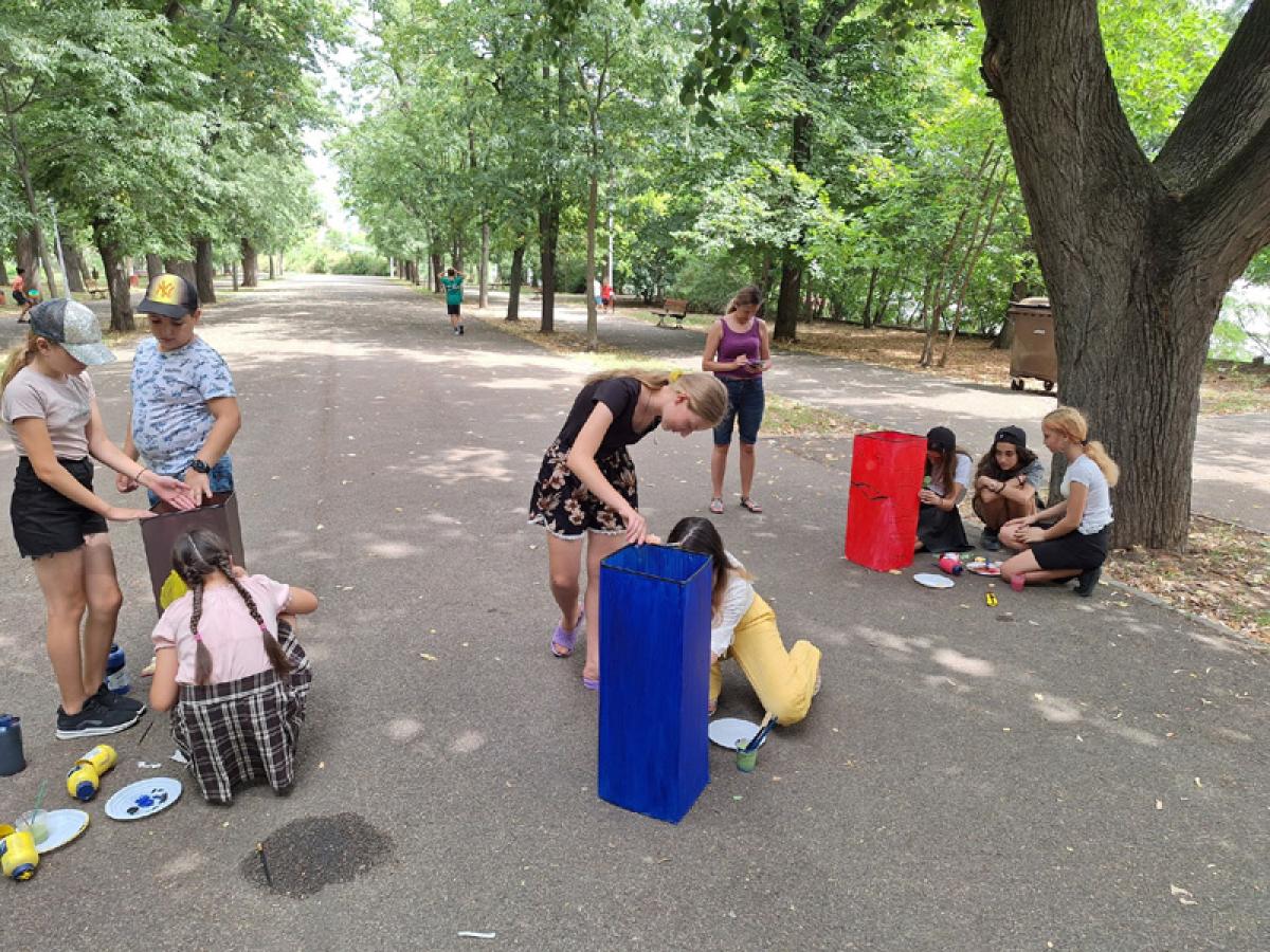 Îndrumați de inimoasa lor profesoară, Petruța Cain, elevii Școlii Gimnaziale Mărașu au personalizat cutiile pe care le-au construit cu propriile mâini și s-au bucurat de liniștea și răcoarea Grădinii Publice în care am petrecut un timp minunat împreună. Activitatea de miercuri a fost realizată în parteneriat cu Asociația Culturală Cinefeel, prezentă tot mai des în activitățile Muzeul Brăilei „Carol I”.