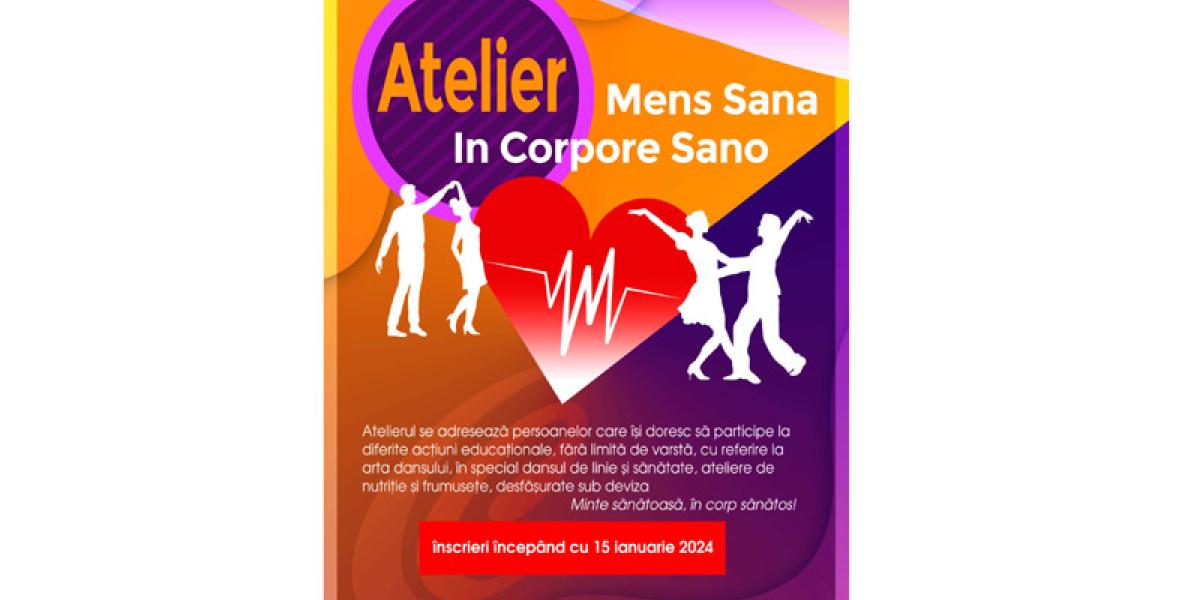 „Atelierul „Mens sana in corpore sano” este un proiect ce se adresează persoanelor care își doresc să participe la diferite acțiuni culturale, cu referire la arta dansului, în special dansul de linie și sănătate (în special ateliere de nutriție și frumusețe), desfășurate sub deviza „Minte sănătoasă, în corp sănătos”. Prin intermediul acestui atelier se urmărește: dezvoltarea personală, indiferent de vârstă; creșterea capacității de adaptare, de comunicare și de relaționare a persoanelor de diferite vârste; descoperirea, cultivarea și fructificarea propriilor abilități și talente artistice, nedescoperite până acum; respectul față de sine, prin acordarea unei atenții sporite sănătății personale și a celor dragi”, precizează organizatorii atelierului.