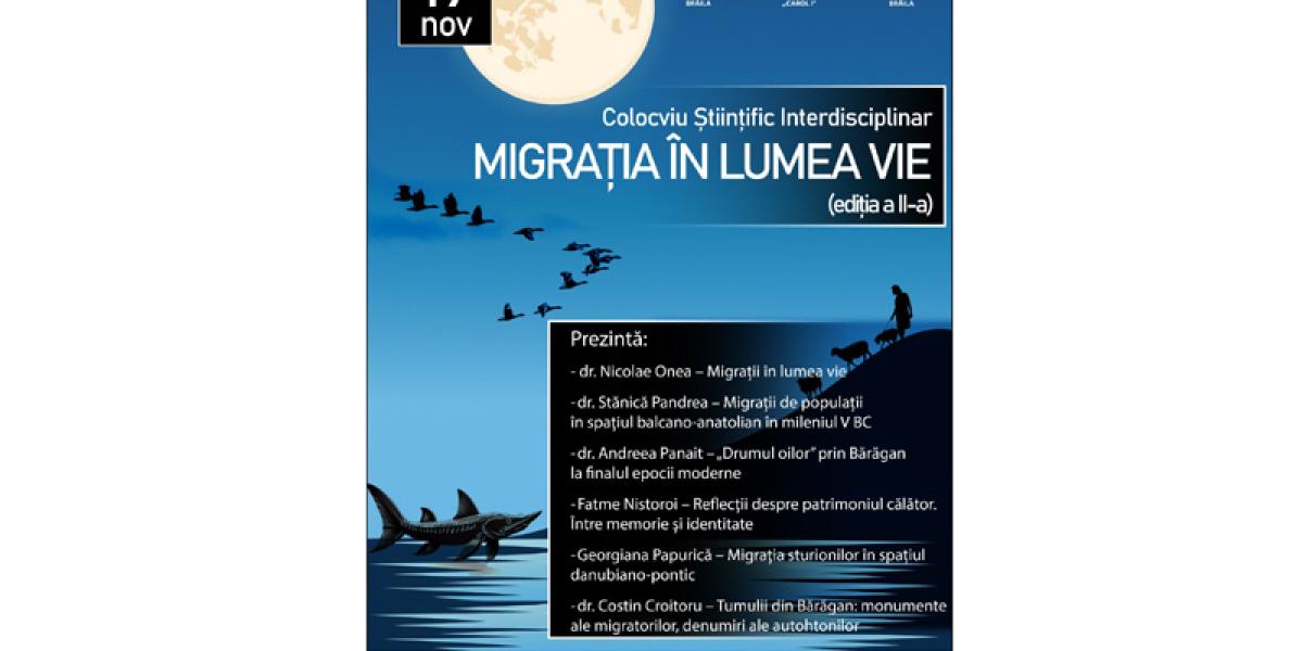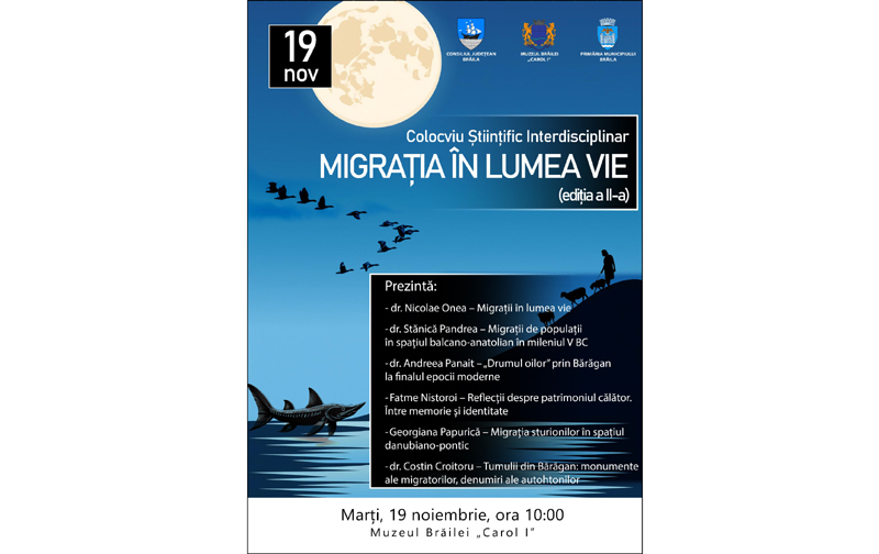 Marți, 19 noiembrie, în Sala „Regele Ferdinand I și Regina Maria” a Muzeului Brăilei „Carol I” (Piața Traian nr. 3), va avea loc Colocviul Științific Interdisciplinar „Migrația în lumea vie” - Ediția a II-a.