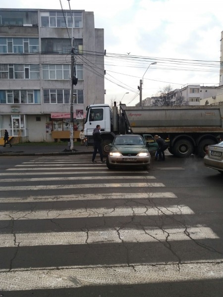 Potrivit poliţiştilor, un bărbat de 37 de ani, din Cazasu, care se afla la volanul unui autoturism „Opel Vectra" circula pe strada 1 Decembrie 1918, pe banda 1, din direcţia Dorobanţi, spre strada Griviţa. La intersecţia cu Roşiori, conducătorul auto nu s-a asigurat şi a intrat pe banda 2, unde circula autocamionul, în aceeaşi direcţie. TIR-ul era condus de un brăilean de 42 de ani, care nu a putut evita impactul. Maşina a fost acroşată pe partea stângă şi târâtă câţiva metri. Evenimentul s-a produs chiar lângă o trecere de pietoni, astfel că urmările ar fi putut fi mult mai grave dacă pietonii nu apucau să se ferească.