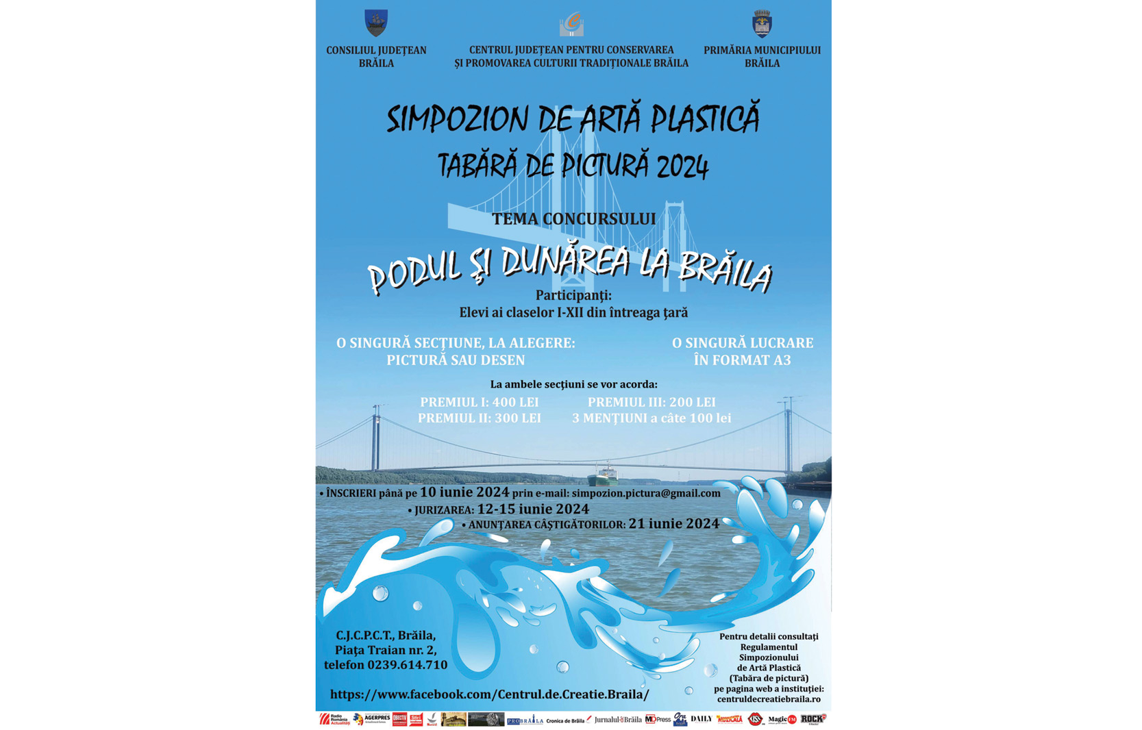„Podul și Dunărea la Brăila” este tema Simpozionului de Artă Plastică (Tabăra de pictură) de anul acesta, la care pot participa elevi din clasele I-XII din toată țara. Un concurent are dreptul să se înscrie la o singură secţiune, la alegere (Pictură sau Desen).