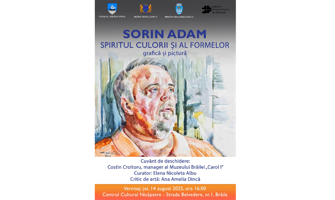 „Cu emoție și respect pentru moștenirea sa artistică, Centrul Cultural Nicăpetre din cadrul Muzeului Brăilei „Carol I” (Strada Belvedere nr. 1 - n.r.) găzduiește de joi, 14 august 2025, începând cu ora 16:00, o expoziție specială dedicată memoriei și creației artistului Sorin Adam. Această manifestare reprezintă o oportunitate de a descoperi și de a admira lucrări remarcabile de grafică și de pictură, semnate de unul dintre cei mai valoroși pictori și graficieni români ai ultimei generații”, precizează curatorul expoziției, Elena Nicoleta Albu, educator muzeal.
