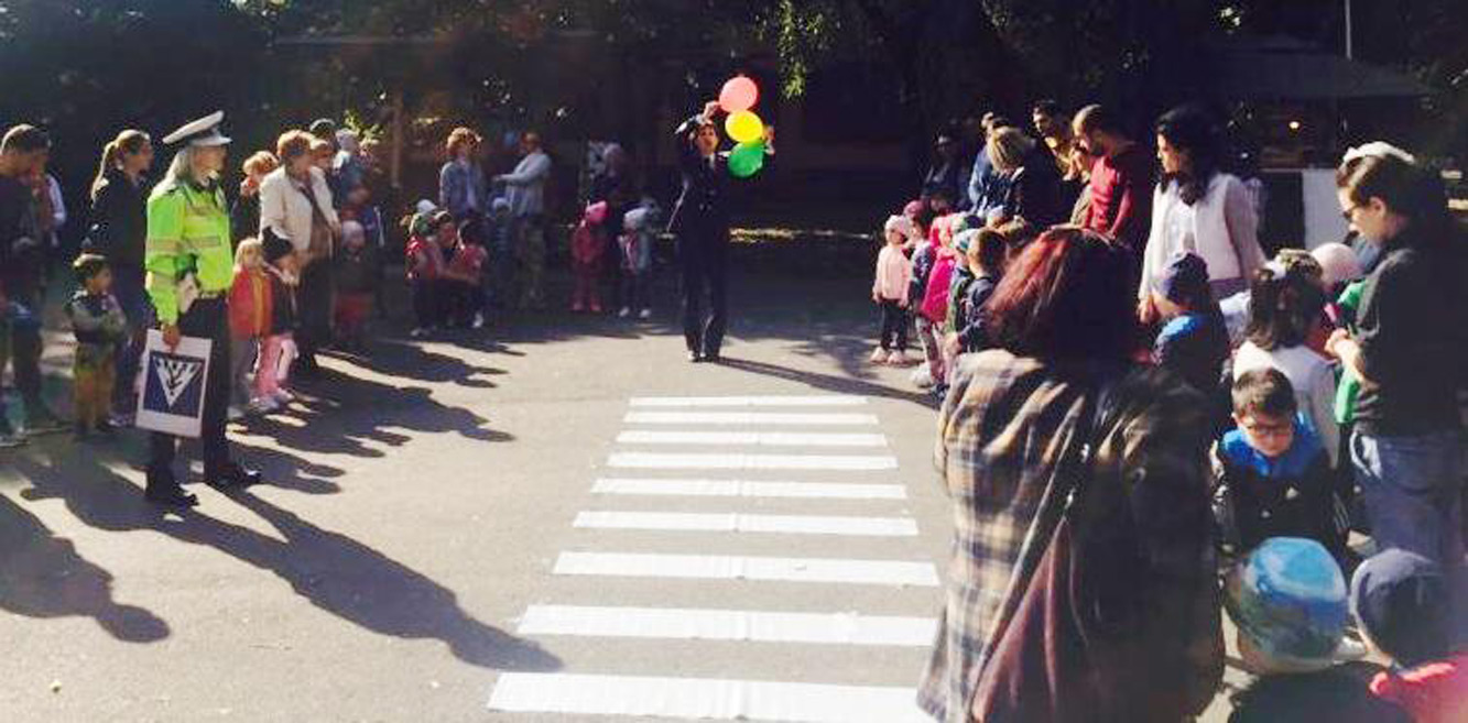 Mai întâi, copiilor li s-a explicat pe unde pot traversa strada şi ce trebuie să facă pentru a nu fi implicaţi în accidente, cum trebuie să procedeze atunci când se deplasează cu mijloace de transport în comun, regulile pe care trebuie să le respecte atunci când sunt pasageri în autoturisme, dar şi care sunt locurile unde se pot juca şi pot merge cu bicicleta în siguranţă. Explicaţiile au fost urmate de aplicaţii practice. Astfel, din baloane colorate poliţiştii au improvizat semafoare şi i-au învăţat pe cei mici diferenţa dintre semaforul pentru autovehicule şi cel pentru pietoni şi cum trebuie să procedeze atunci când vor să treacă strada pe la trecerea de pietoni semaforizată. De asemenea, folosindu-se de o cutie şi un ou, le-au arătat cât de importantă este centura de siguranţă şi ce li se poate întâmpla celor care “uită” să o poarte.