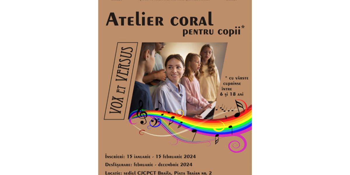 Potrivit unui comunicat al instituției-gazdă, Consiliul Județean Brăila prin Centrul Județean pentru Conservarea și Promovarea Culturii Tradiționale (Centrul de Creație) și Primăria Municipiului Brăila organizează, pe tot parcursul anului 2024, Atelierul coral pentru copii intitulat „Vox et Versus”.