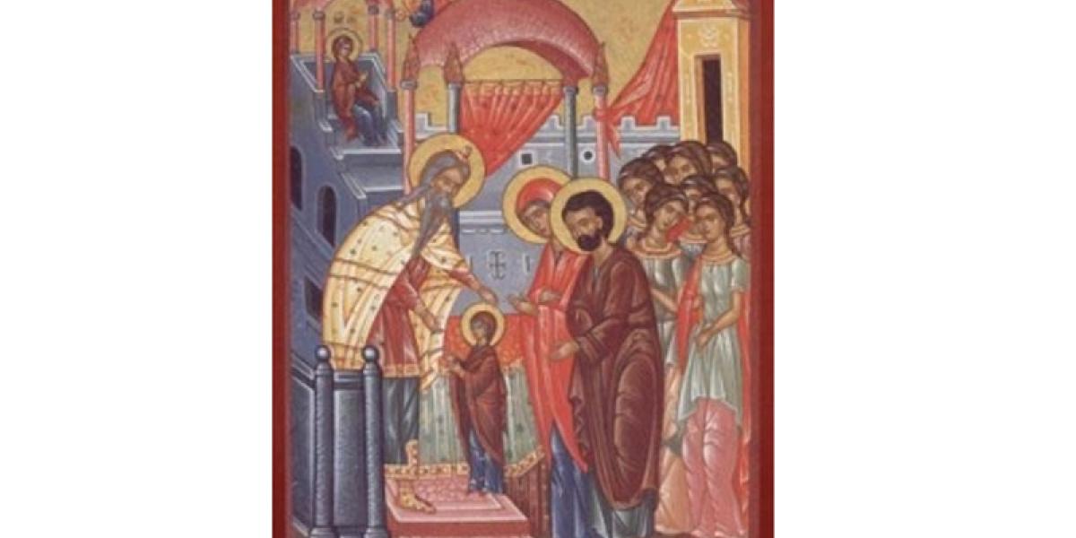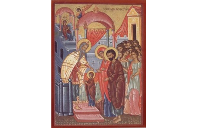 Intrarea in Biserica a Maicii Domnului comemoreaza aducerea Fecioarei Maria la Templu de catre parintii ei, Sfintii Ioachim si Ana. Arhiereul Zaharia a inchinat-o pe Maica Domnului in Sfanta Sfintelor, locul cel mai sfant din Templu, unde numai arhiereul intra o singura data pe an. Fecioara Maria a stat in Templu, timp de 12 ani.