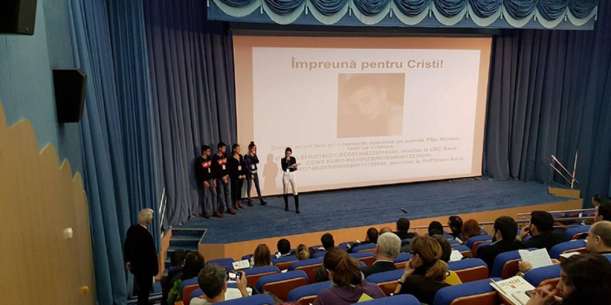 Elevii şi cadrele didactice de la Liceul “Mihail Sebastian” s-au alăturat campaniei umanitare pentru Cristi. Impresionaţi de povestea sa şi de sacrificiile făcute de părinţii acestuia, copiii au organizat pe parcursul săptămânii trecute o acţiune de strângere de fonduri pentru adolescent. Ei au lipit afişe în şcoli şi au mers din clasă în clasă pentru a strânge bănuţi.