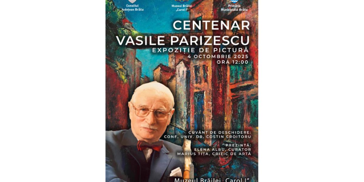 „Muzeul Brăilei „Carol I” are deosebita onoare să vă invite la expoziția dedicată marelui pictor, colecționar și om de cultură român, Vasile Parizescu, celebrând astfel împlinirea a 100 de ani de la nașterea sa. Vernisajul va avea loc pe data de 4 octombrie 2025, începând cu ora 12:00, la sediul Muzeului Brăilei „Carol I” din Piața Traian nr. 3”, precizează Elena Nicoleta Albu, educator muzeal și curator al expoziției.