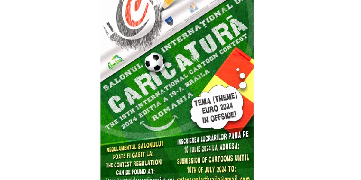 • înscrierile se fac până pe data de 10 iulie, iar jurizarea în perioada 15 - 31 iulie • tema ediției a XIX-a, 2024, a Salonului: „EURO 2024 ÎN OFSAID” • Vernisajul Salonului Internațional de Caricatură de la Brăila şi decernarea premiilor vor avea loc în data de 20 septembrie a.c.