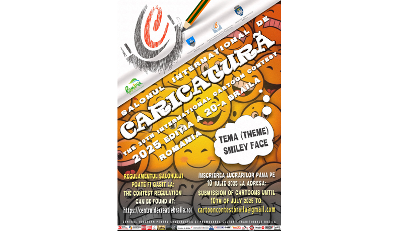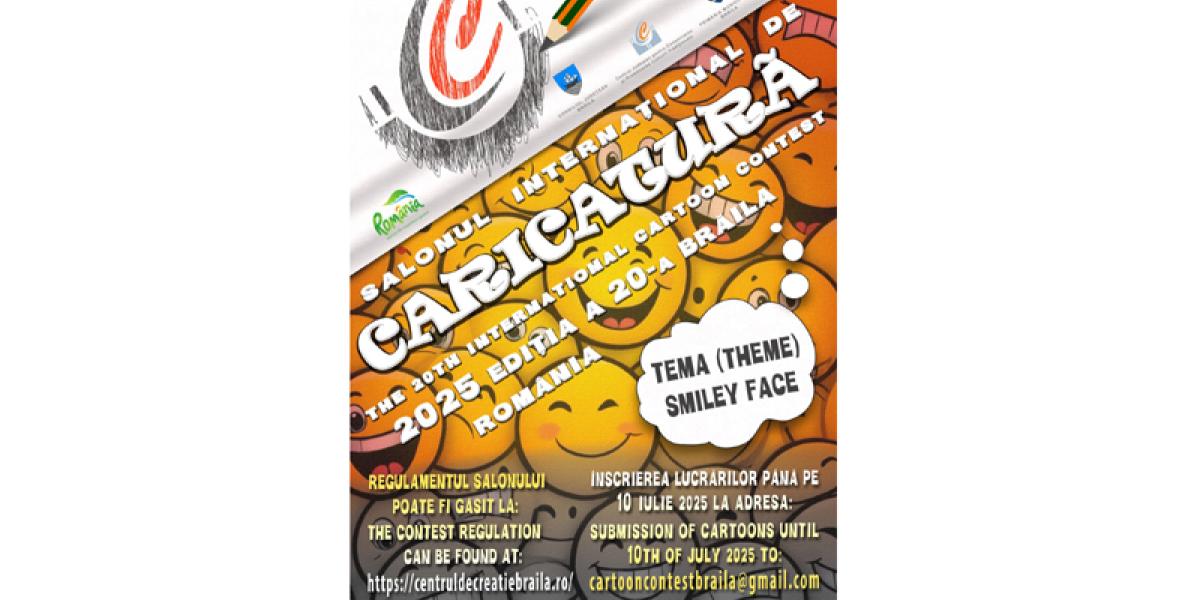 • înscrierile se pot face până pe 10 iulie, ora 24:00 (ora locală a României), la adresa: cartooncontestbraila@gmail.com • tema ediției de anul acesta a Salonului este „Smiley Face” („Fața zâmbitoare”) • evenimentul atrage an de an sute de participanți din zeci de țări ale lumii