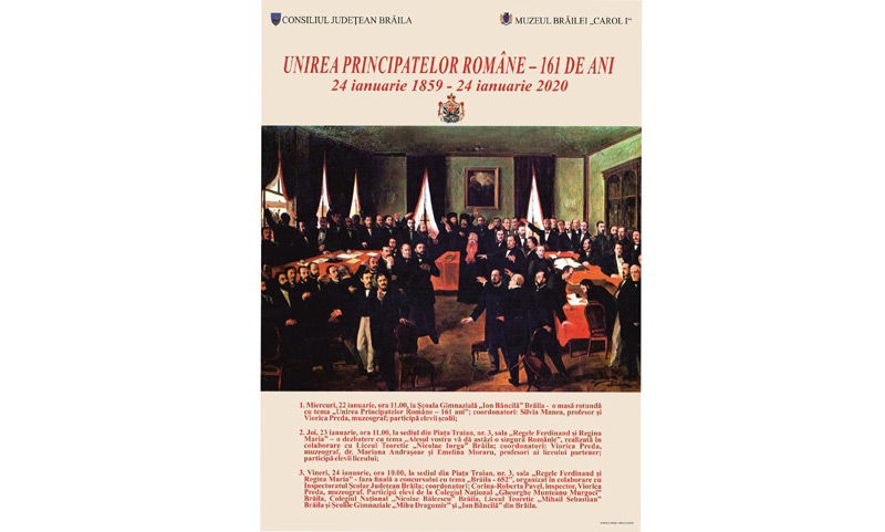 În aceste zile, la Secţia “Istorie” a Muzeului Brăilei “Carol I” se desfăşoară o serie de activităţi dedicate Unirii Principatelor Române din 24 ianuarie 1859.