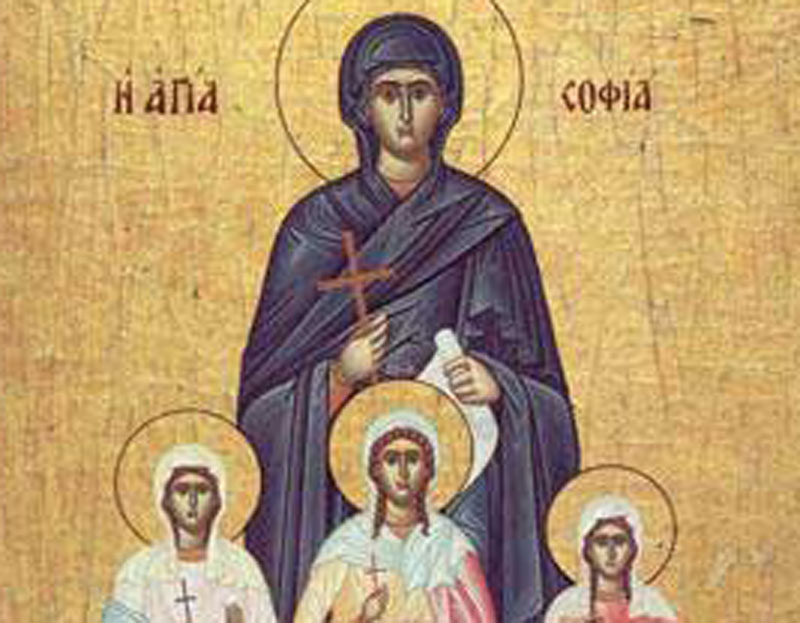 Sfânta Muceniţă Sofia şi fiicele sale Pistis, Elpis şi Agapis sunt prăznuite an de an, în zua de 17 septembrie. Ele au trăit în Italia şi au pătimit în timpul domniei împăratului Adrian (117-138 d.H.). Sofia (în greacă “înţelepciune”) a avut trei fiice pe care le-a botezat cu numele celor trei virtuţi creştine: Pistis (“credinţă”), Elpis (“nădejde”) şi Agapis (“dragoste”).