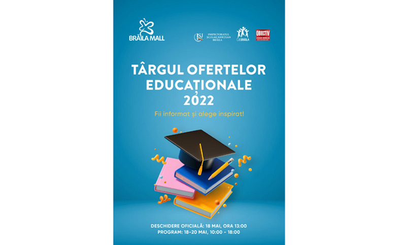 * evenimentul este organizat de Inspectoratul Școlar Județean Brăila și se va desfășura la Brăila Mall * timp de trei zile, elevii și părinții sunt invitați să vină la târg pentru a afla informații despre admiterea la liceu * pentru anul școlar 2022-2023, absolvenții de clasa a VIII-a vor avea la dispoziție peste 2.500 locuri în învățământul liceal și profesional