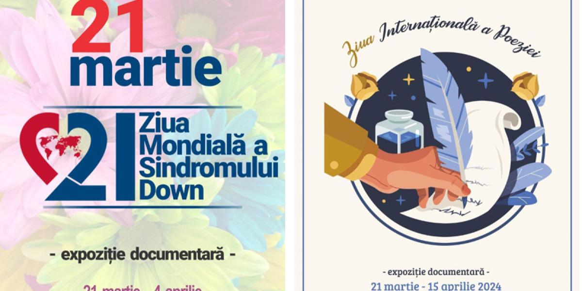 • instituția marchează data de 21 martie cu două expoziții documentare: Ziua Mondială a Poeziei și Ziua Mondială a Sindromului Down