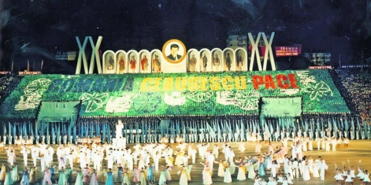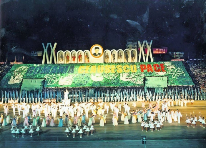 În plus, pe stadioane erau alte manifestări omagiale de dimensiuni megalomanice dedicate Partidului Comunist şi conducătorului iubit, la care elevii, artiştii, sportivii sau muncitorii din uzine erau obligaţi să participe, cu entuziasm, în cinstea cuplului dictatorial.
