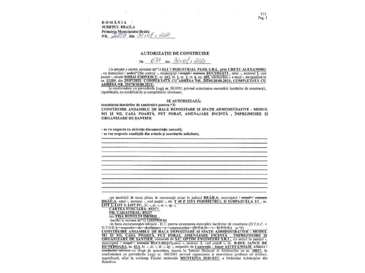 * anunțul făcut de primarul Marian Dragomir în campania electorală de la Alegerile Locale din 27 septembrie 2020, privind realizarea primului parc industrial în Brăila, începe să se contureze * ieri, atât edilul-șef, cât și Element Industrial, dezvoltatorul imobiliar care a concesionat anul trecut Perimetrul 2 al Zonei Libere, au anunțat că a fost emisă autorizația de construire pentru prima hală cu suprafața de 10.000 mp * proiectul logistic este localizat pe un teren de 11 hectare din Zona Liberă * potrivit Element Industrial, planurile includ dezvoltarea în trei faze a unui parc logistic cu suprafață brută de 50.000 mp * o investiție totală de peste 25 milioane de euro * nu se poate preciza, deocamdată, dacă spațiile vor fi folosite pentru activități de producție sau depozitare * cert este că, potrivit primarului Dragomir, investiția va crea foarte multe locuri de muncă