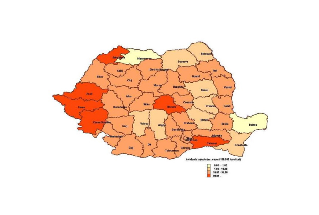 La nivel naţional, de la debutul epidemiei de rujeolă, au fost confirmate 10.623 cazuri, numai în săptămâna 29 ianuarie - 2 februarie 2018 fiind raportate 64 cazuri confirmate în 9 judeţe şi în Bucureşti, potrivit Institutului Naţional de Sănătate Publică. Astfel, în judeţul Bacău s-au raportat cele mai multe cazuri de rujeolă, 21 la număr, în săptămâna amintită anterior. Urmează Prahova, cu 19 cazuri şi Bucureşti cu 8 cazuri. În Botoşani s-au raportat 5 cazuri, iar la Brăila 3. Tot 3 cazuri confirmate s-au înregistrat şi în judeţul Ialomiţa, iar în Dâmboviţa 2 cazuri. Judeţele Constanţa, Galaţi şi Vaslui sunt ultimele pe listă, cu câte un caz confirmat de rujeolă. Alte 38 persoane au murit din cauza acestei maladii, majoritatea fiind copii.
