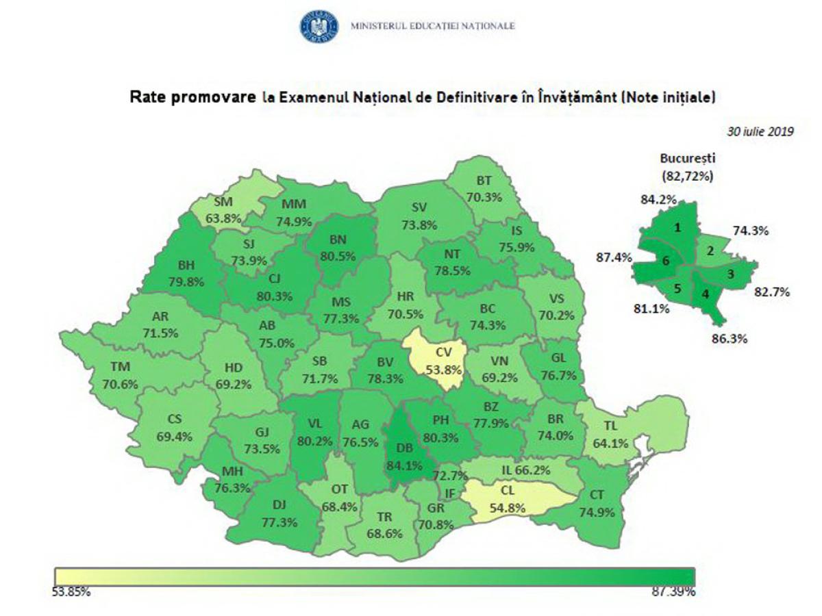 Astfel, după susţinerea ultimei probe a examenului de definitivat din sesiunea 2019 - proba scrisă, au fost declaraţi promovaţi 4.882 candidaţi care au obţinut medii între 8 şi 10.