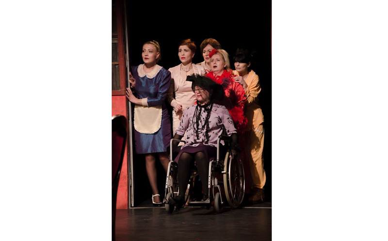 Duminică, 12 ianuarie, de la ora 18,00, la Teatrul “Maria Filotti” se joacă piesa 8 FEMEI, de Robert Thomas, regia Radu Nichifor. Spectacolul are loc la Sala Studio, sală ingenios şi colorat transformată în spaţiu intim, în acelaşi timp familiar şi familial. Un spaţiu al sărbătorii devenit peste noapte spaţiu al dezvăluirilor, al izbucnirii conflictelor latente, al mărturisirilor şi al (auto)descoperirii.