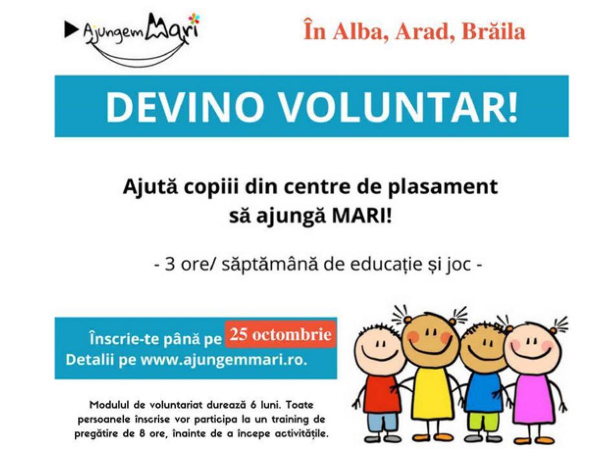 • proiectul “Ajungem MARI” caută voluntari în judeţul Brăila pentru a contribui la educaţia copiilor din centrele de plasament • astăzi este ultima zi de înscrieri