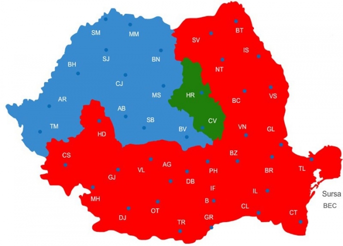 * Caraş-Severin: Ponta - 43,03%, Iohannis - 34,48%, Diaconescu - 5,41%
