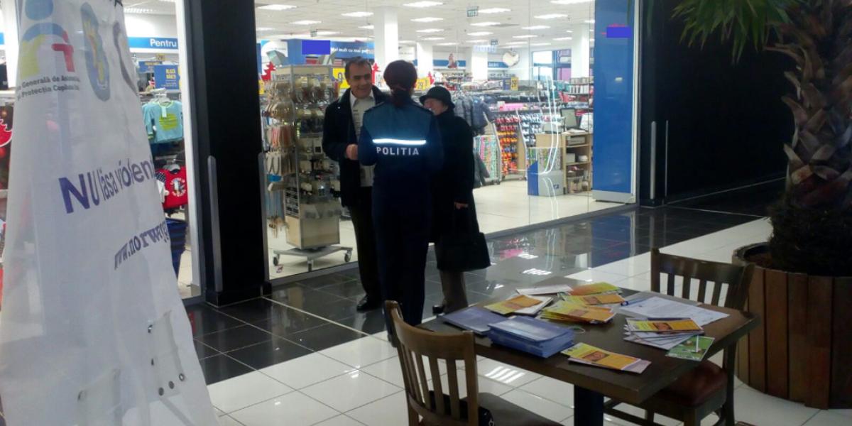Poliţiştii şi asistenţii sociali au discutat cu femeile aflate la cumpărături în incinta complexului comercial şi le-au oferit sfaturi pentru prevenirea şi gestionarea situaţiilor conflictuale. Femeile au fost informate că pot solicita ordin de protecţie în cazul în care sunt victime ale violenţei domestice. În plus, ele pot beneficia de serviciile de găzduire şi sprijin în cadrul unor centre de protecţie a victimelor violenţei în familie.