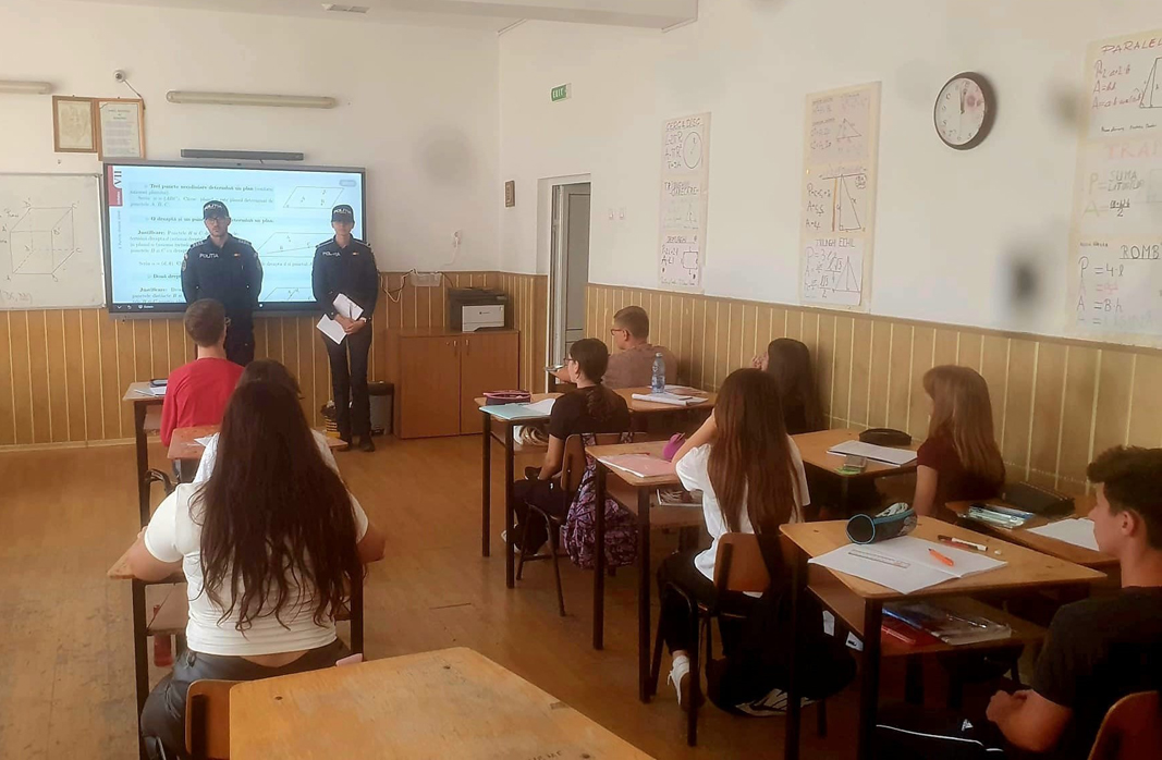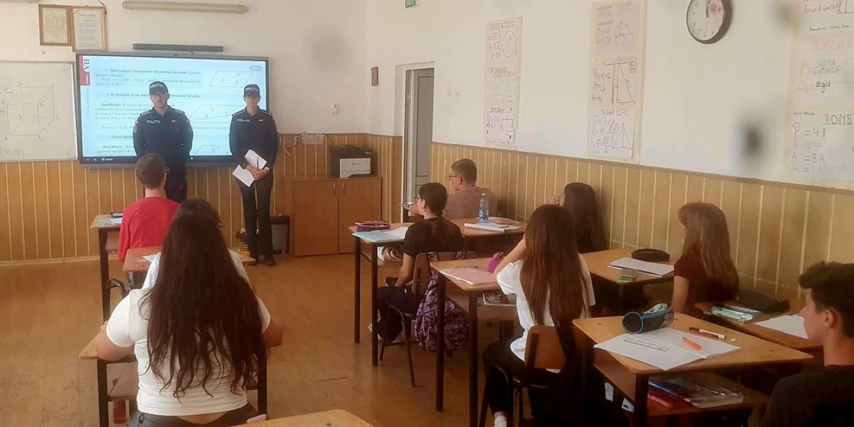 • polițiștii au purtat discuții cu elevii de la mai multe unități școlare pe linia prevenirii violenței în incinta și zona adiacentă școlilor, a infracțiunilor la viața sexuală, a prevenirii infracțiunilor contra patrimoniului și a traficului și consumului de droguri