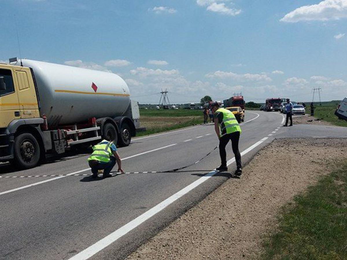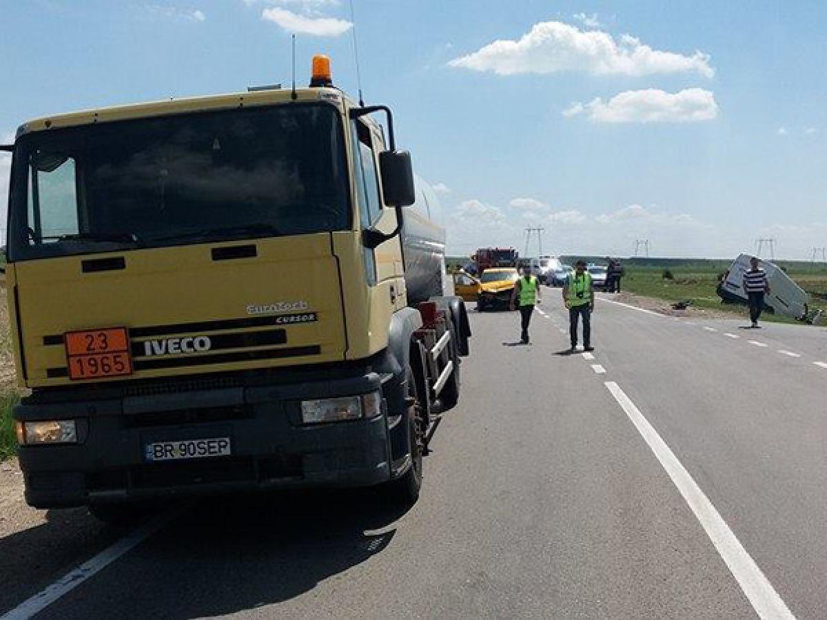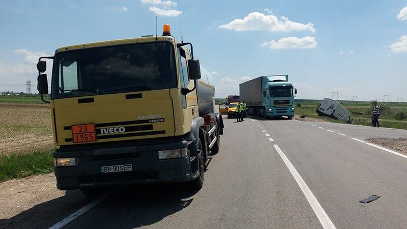 Pe fondul nepăstrării distanţei regulamentare, după cum au stabilit poliţiştii, şoferul cisternei, în vârstă de 57 de ani, din Brăila, vehicul care aparţine firmei lui Florin Cîrligea, a acroşat din spate un Logan care circula în faţa sa, condus pe aceeaşi bandă de un brăilean de 35 de ani. Cele două autovehicule veneau dinspre Brăila, iar la un moment dat, când Logan-ul a încercat să vireze către satul Pietroiu, s-a trezit lovit. În urma impactului, autoturismul a ajuns direct pe contrasens, unde s-a izbit frontal de o dubă “Citroen”, condusă de un tânăr de 24 de ani, din Brăila, care circula regulamentar, din sens opus. Impactul a fost unul puternic, astfel că duba a “zburat” de pe şosea şi aproape s-a răsturnat pe câmp.