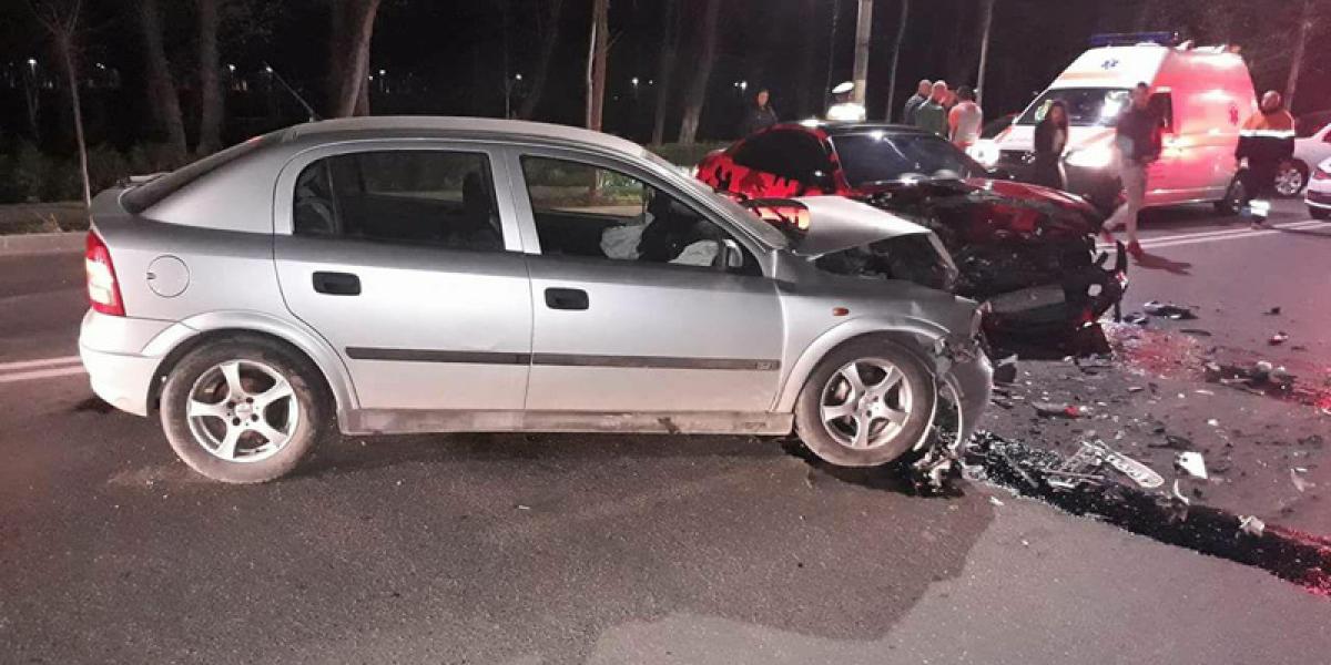 • sâmbătă spre duminică, după miezul nopţii, două maşini au intrat în coliziune pe şoseaua Buzăului • şoferul unui BMW a încercat să evite impactul cu un Opel oprit pentru a vira stânga, însă a ajuns pe contrasens şi a intrat într-un alt autoturism