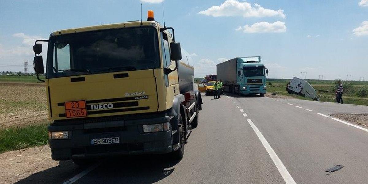 * evenimentul s-a produs în urmă cu puțin timp, un Logan fiind lovit din spate de un TIR și aruncat pe contrasens, unde a intrat în coliziune cu o dubiță