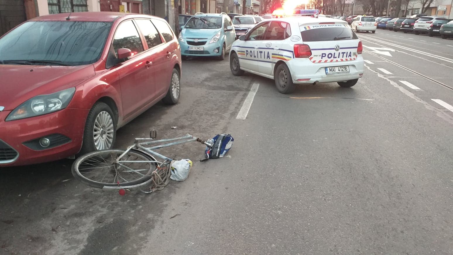 Incident în trafic, în prima zi a anului, pe bulevardul Dorobanților. Din primele cercetări reiese că unui brăilean în vârstă de 67 de ani i s-a rupt furca de la bicicletă, în timp ce pedala pe bulevardul Dorobanților, în apropiere de intersecția cu strada Apollo. Bărbatul a căzut și s-a lovit destul de serios, fiind transportat la spital pentru îngrijiri medicale. Din fericire, în momentul incidentului traficul era destul de lejer, astfel că biciclistul nu a fost lovit de alt vehicul.