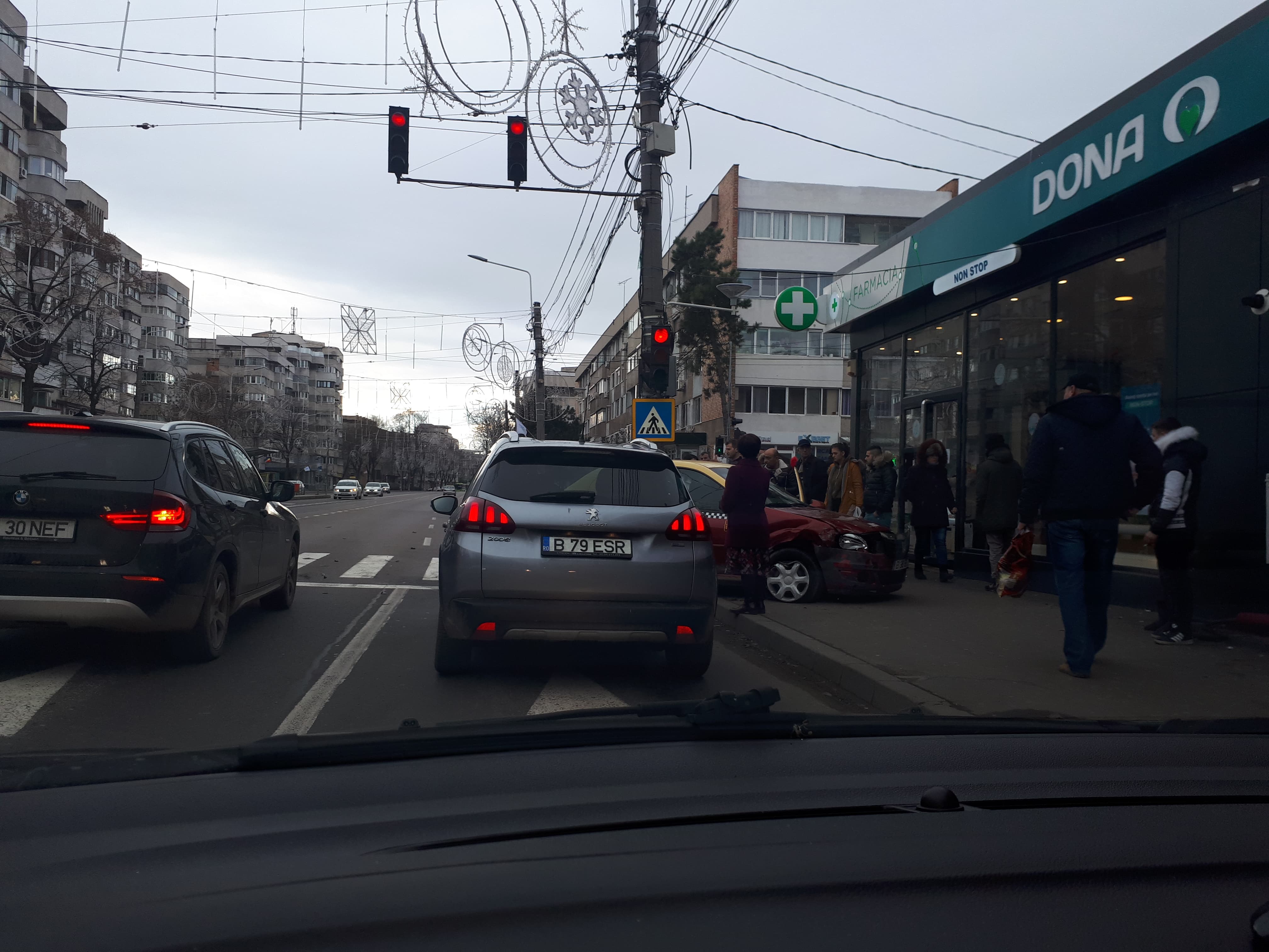 Potrivit poliţiştilor, un şofer constănţean de 32 de ani conducea autoturismul pe Calea Călăraşilor, dispre Barieră spre Primărie. Aflat pe banda a doua de circulaţie, în zona Piaţa Concordia, şoferul a vrut să vireze stânga şi a lovit un taxi condus de un brăilean de 37 de ani. În urma impactului, autoturismul taxi a fost proiectat într-o altă maşină oprită la semafor pe sensul opus de mers. Aceasta era condusă de un brăilean de 34 de ani. Taxi-ul a ajuns pe trotuarul unde de obicei sunt mulţi pietoni care aşteaptă la trecere. Fiind a doua zi de Crăciun însă, brăilenii nu au plecat prea mulţi prin oraş. Se putea produce o tragedie dacă erau oameni în zona respectivă.
