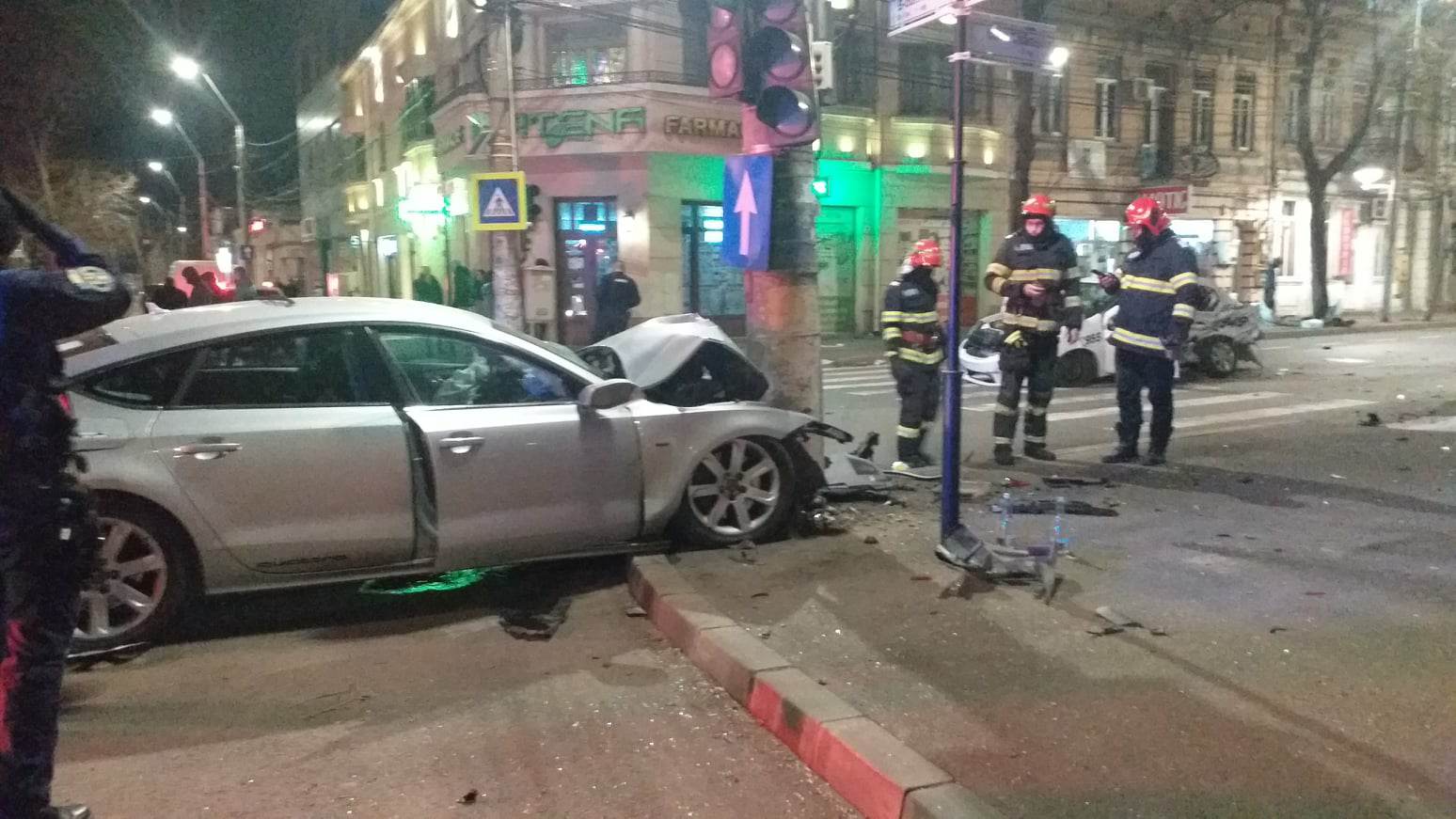 Grav accident de circulație pe Calea Călărașilor, la intersecția cu B-dul Cuza, produs duminică seara, în jurul orei 23.00. Din primele informații, un taximetrist care circula pe B-dul.Cuza, dinspre faleza Dunării, nu ar fi acordat prioritate unui Audi care circula pe Calea Călărașilor. În urma impactului, autoturismul Audi a fost proiectat într-un stâlp. Ambii șoferi, precum și un pasager aflat în taxi, au fost răniți, fiind transportați la spital. Vom reveni.