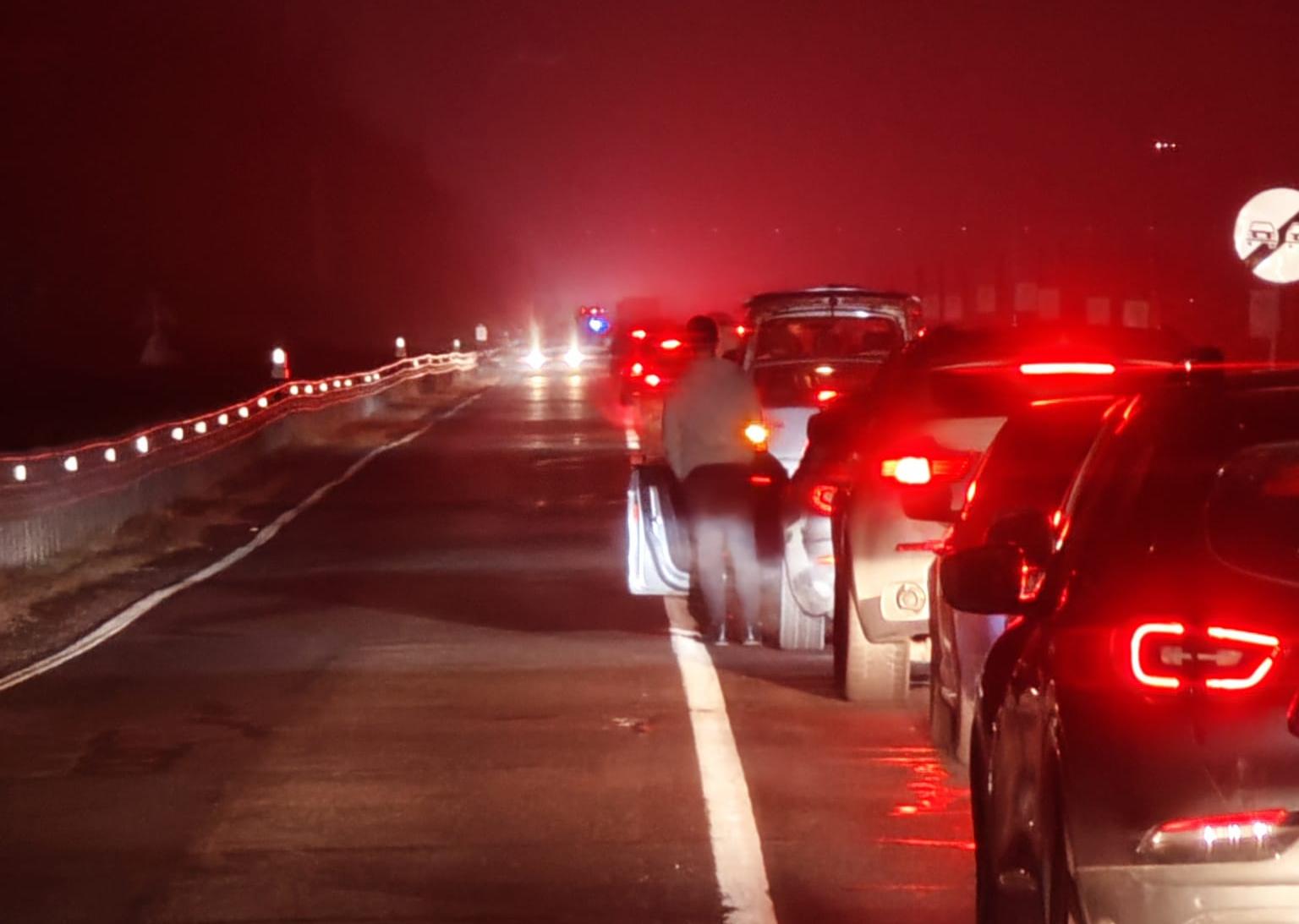 Traficul a fost blocat în totalitate mai mult de o oră și jumătate. Abia în jurul orei 19.30 s-a reluat parțial circulația, pe o singură bandă.