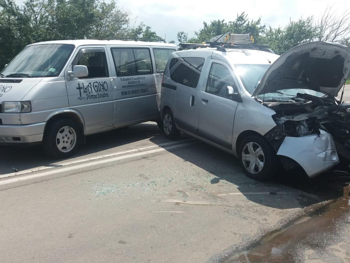 * o dubiță de transport mortuar a vrut să vireze stânga, însă a fost lovită din spate de o Dacia Dokker, care a ajuns pe contrasens și a intrat în coliziune cu un Volkswagen