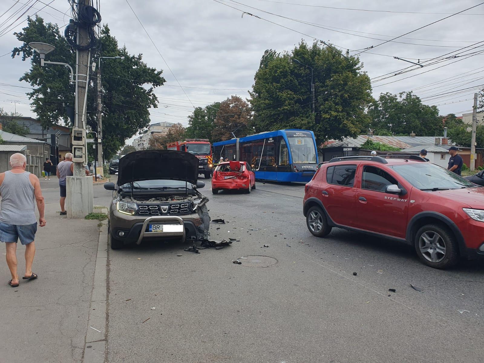ȘTIRE ACTUALIZATĂ Inspectoratul de Poliție Județean ne-a transmis că accidentul s-a produs, miercuri, 28 august, în jurul orei 12.55, pe Bulevardul Dorobanților, la intersecția cu strada Cloșca.Din primele cercetări a reieșit că o tânără de 27 de ani, în timp ce conducea un autoturism pe Bulevardul Dorobanților dinspre strada 1 Decembrie 1918, la intersecția cu strada Cloșca, fiind oprită pentru a efectua virajul la stânga, a fost lovită în partea din spate de un tramvai, condus de un bărbat de 47 de ani, din Brăila. Din impact, autovehiculul condus de tânără a fost proiectat pe contrasens într-un alt autovehicul, condus de un bărbat de 61 de ani, din Brăila.