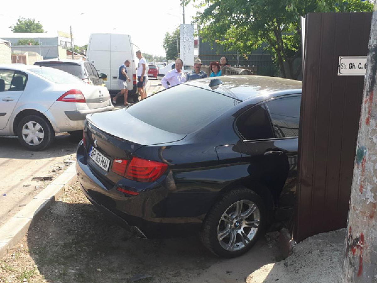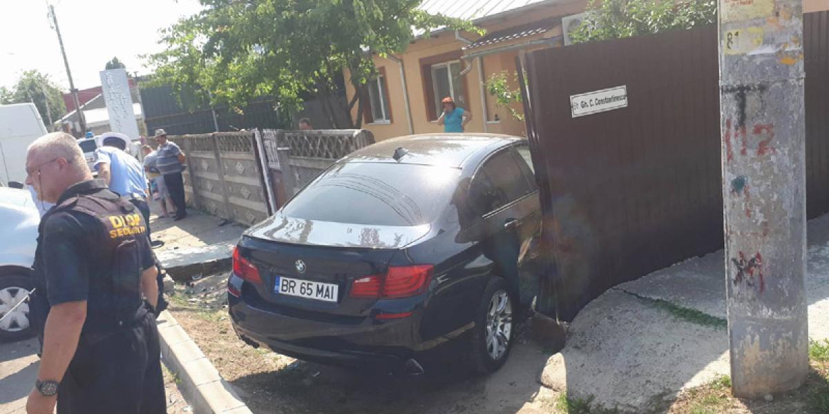 Grav accident, cu trei maşini implicate, pe şoseaua Buzăului, aproape de ieşirea din municipiu. Un “BMW” a ajuns în curtea unei locuinţe, după ce a spart gardul din beton. Vina a aparţinut altui şofer.