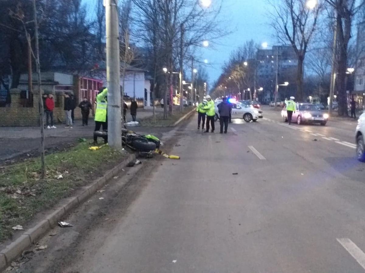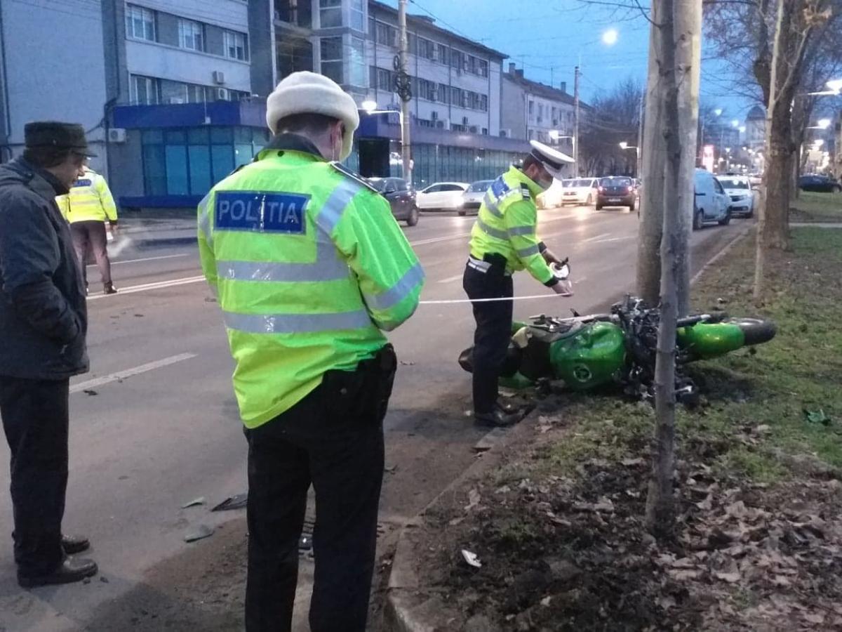 O motocicletă s-a izbit violent de o mașină, a ricoșat și s-a oprit într-un stâlp, pe Calea Călărașilor, în zona Ciocârlia. Accidentul s-a produs astăzi, duminică, 31 ianuarie, în jurul orei 17.00. Autoturismul ieșise de pe o stradă secundară, fiind lovit de motocicleta care circula spre Bariera Călărașilor. Motociclistul a avut nevoie de îngrijiri medicale, fiind transportat de o ambulanță la Serviciul Primiri Urgențe a Spitalului Județean.Polițiștii au demarat cercetări, urmând să stabilească în ce circumstanțe s-a produs accidentul.
