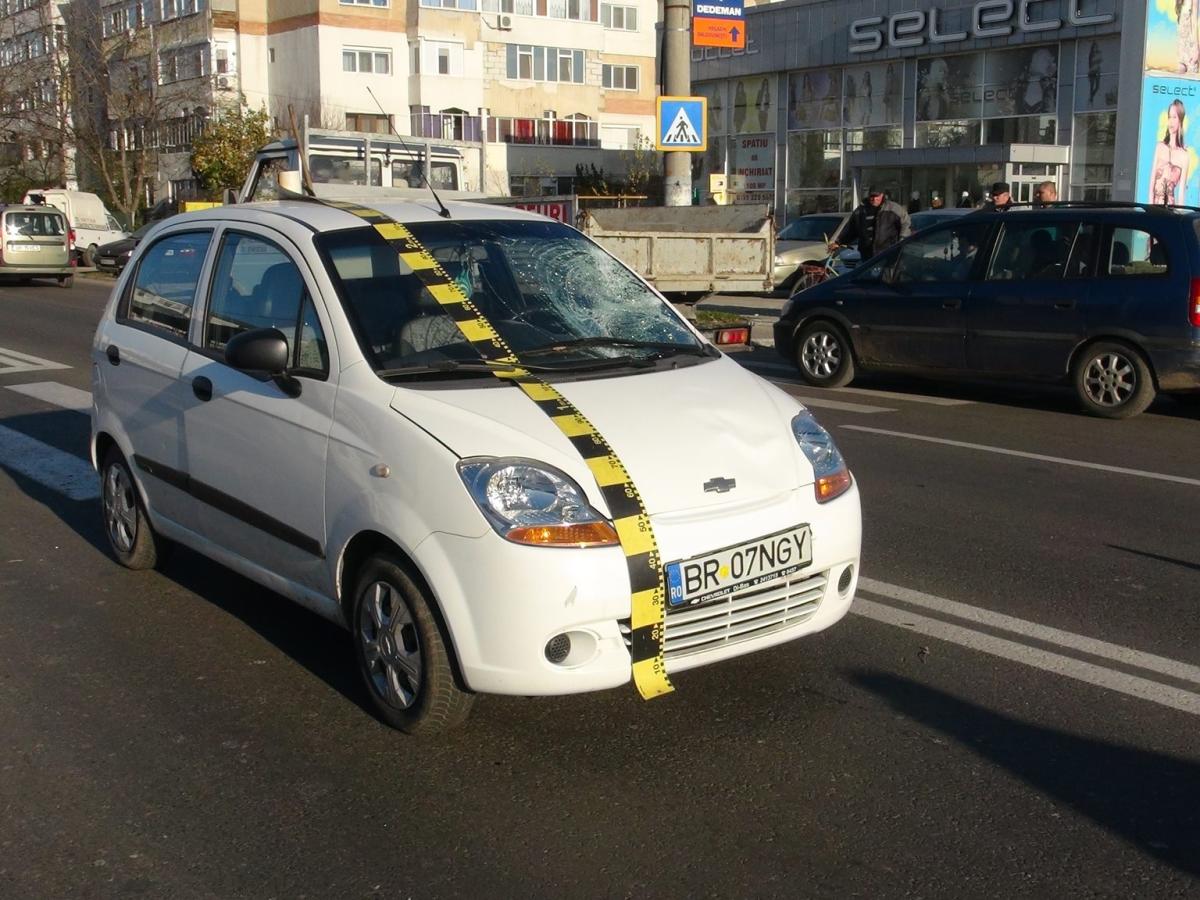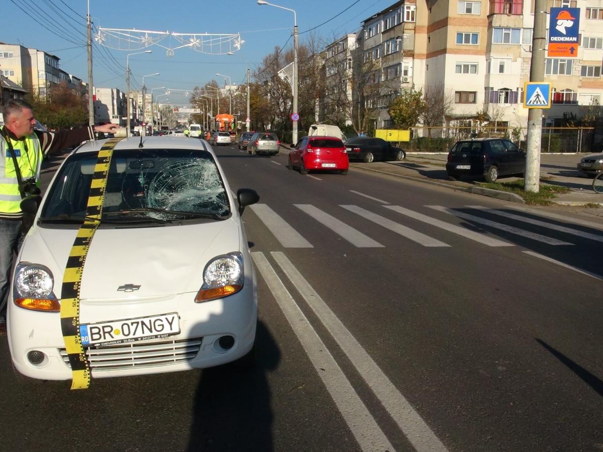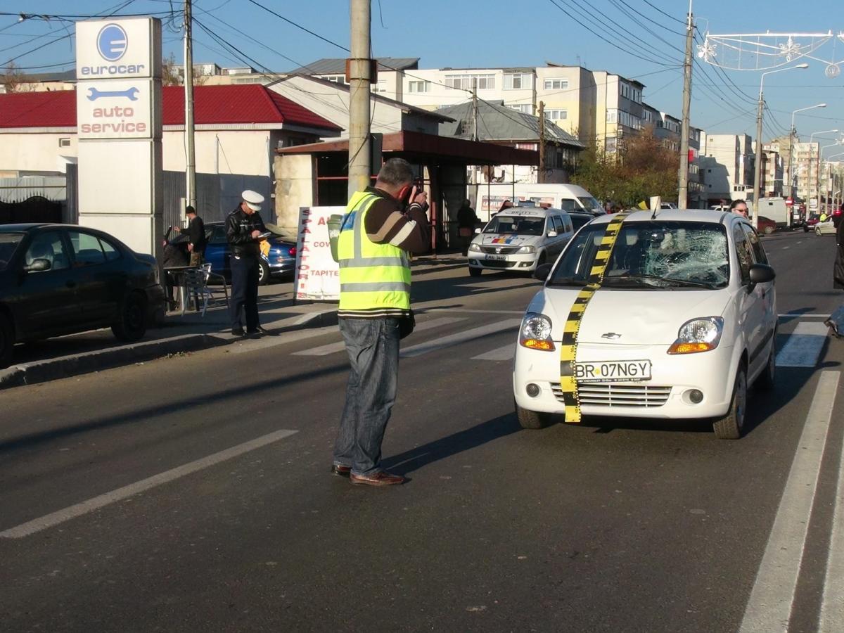 În urmă cu puţin timp, un bărbat în vârstâ de 62 de ani fost accidentat în timp ce traversa pe marcajul pietonal, în zona MOL de la ieşirea din municipiu (capătul liniei de autobuz 4). Acesta era împreună cu soţia şi îşi lăsase autoturismul la service, apoi a vrut să ajungă la femeia care îl aştepta pe partea cealaltă a drumului. Un şofer de 66 de ani, care se deplasa cu un autoturism Smart, pe şoseaua Vizirului, dinspre municipiu spre combinat, l-a surprins şi accidentat pe cel angajat în traversare. Martorii au spus că pietonul a traversat în fugă.