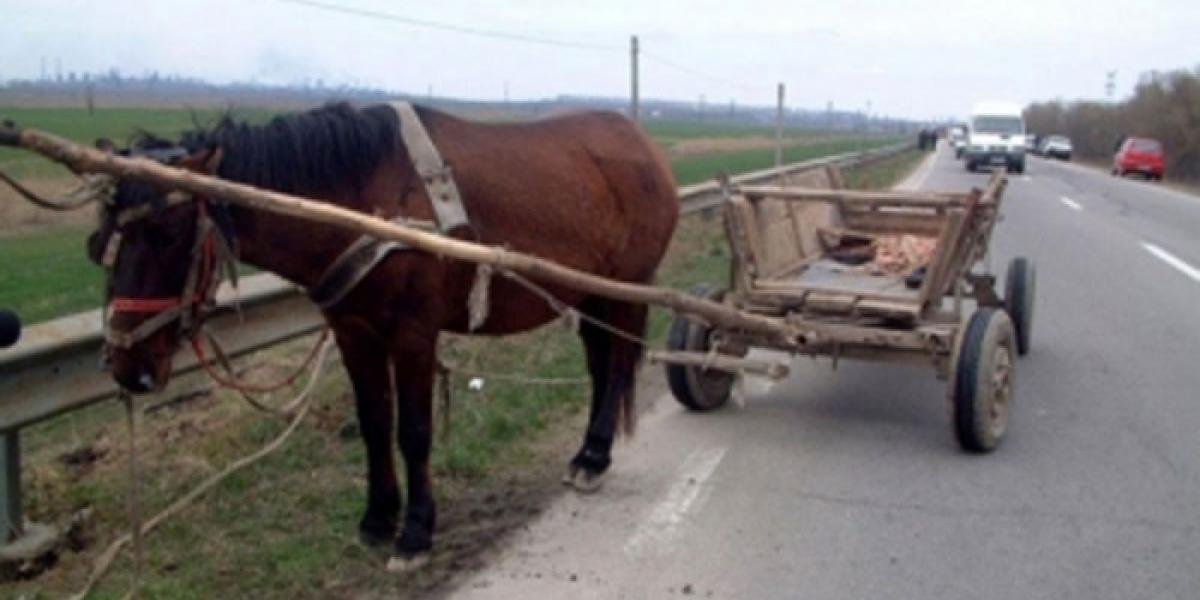 Un căruţaş s-a cocoţat pe grămada de paie din căruţă şi nu a mai putut să îşi ţină echilibrul.