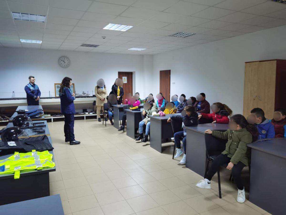 * polițiștii Biroului Județean de Poliție Transporturi Brăila au primit la sediu mai multe clase de copii din cadrul școlii din localitatea Traian, dornici să afle aspecte ale meseriei de polițist * agenții le-au oferit informații despre ceea ce presupune “să fii polițist” și au împărtășit cu aceștia din experiențele practice