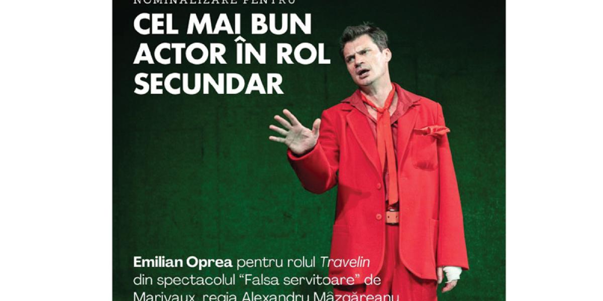 Emilian Oprea, actor al Teatrului ”Maria Filotti”, a fost nominalizat la premiile UNITER – ”Cel mai bun actor în rol secundar”, pentru rolul Travelin din spectacolul „Falsa servitoare” de Marivaux, regia Alexandru Mâzgăreanu. Spectacolul trupei brăilene a avut premiera în luna septembrie a anului trecut, fiind și producția care a deschis Festivalul Internațional de Teatru și Arte Performative 2023.
